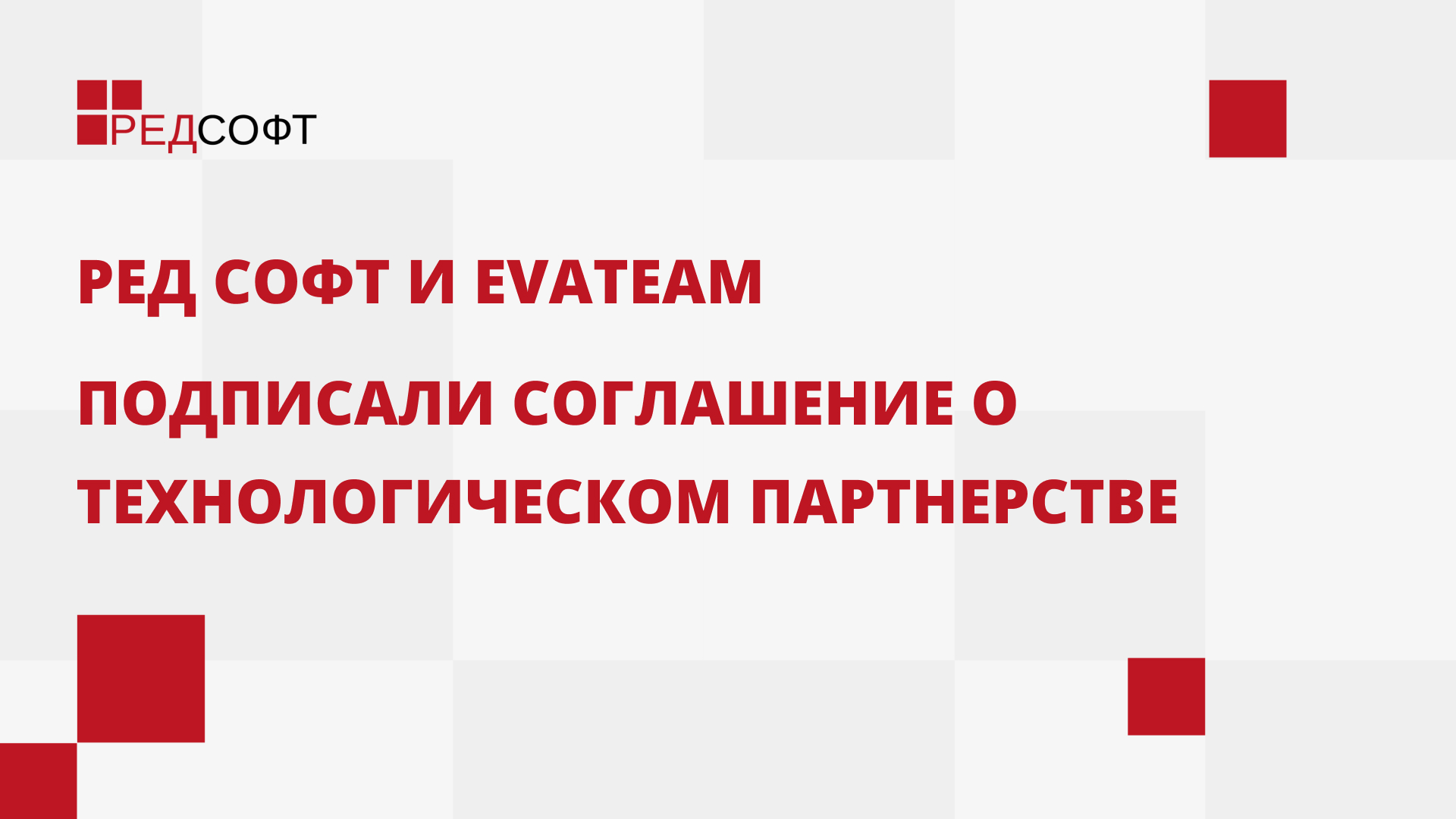Действуя в рамках стратегии импортозамещения программного обеспечения, компании «РЕД СОФТ» и EvaTeam заключили соглашение о технологическом партнерстве.